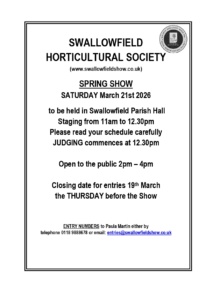 We are pleased to announce that the Swallowfield Horticultural Society Spring Show has been set for:-